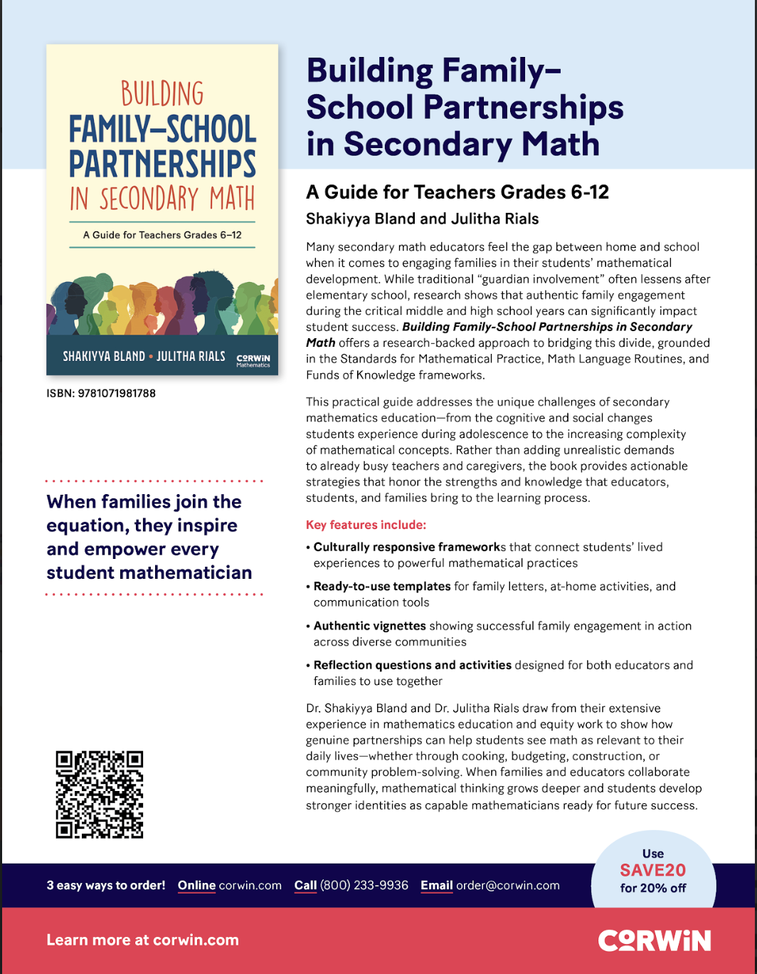 We are excited to share a milestone we’ve been working toward for quite some time—the launch of our new book, Building Family-School Partnerships in Secondary Math!