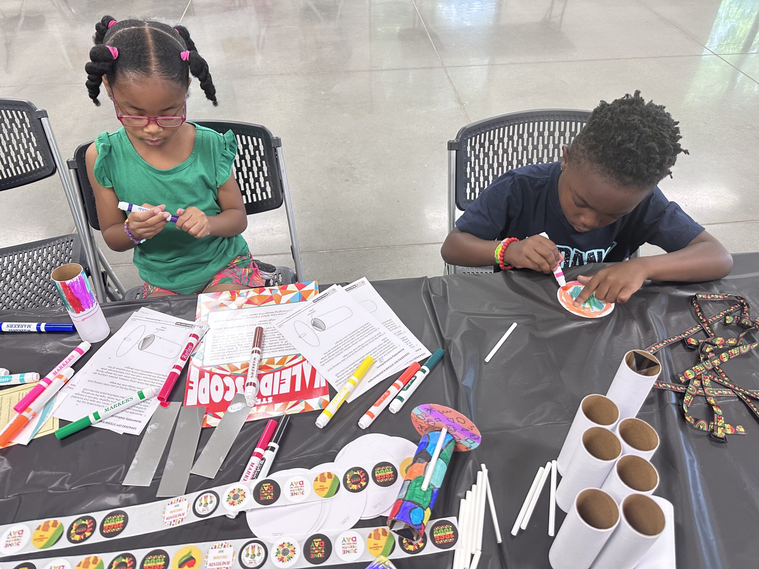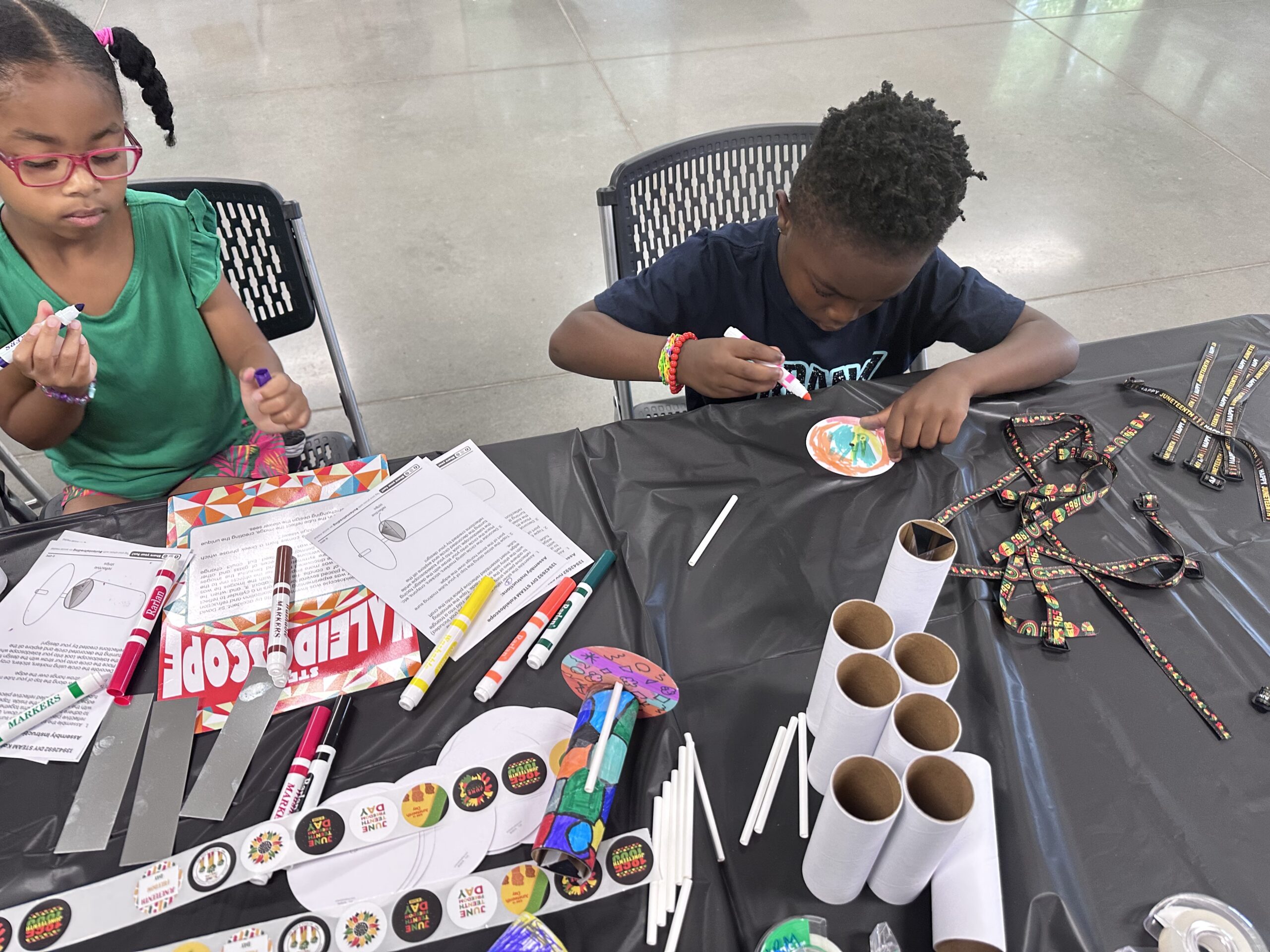 We celebrated Juneteenth 2025 by honoring the rich history and culture of African Americans in Science, Technology, Engineering, Art, and Mathematics (STEAM)! Families engaged in activities that connected creativity, innovation, and freedom, including exploring the legacy of Dr. W.E.B. Du Bois through his groundbreaking Data Portraits, discovering the power of storytelling with data, crafting dazzling kaleidoscopes, and enjoying hands-on STEAM projects that sparked imagination and highlighted the lasting impact of African American contributions.